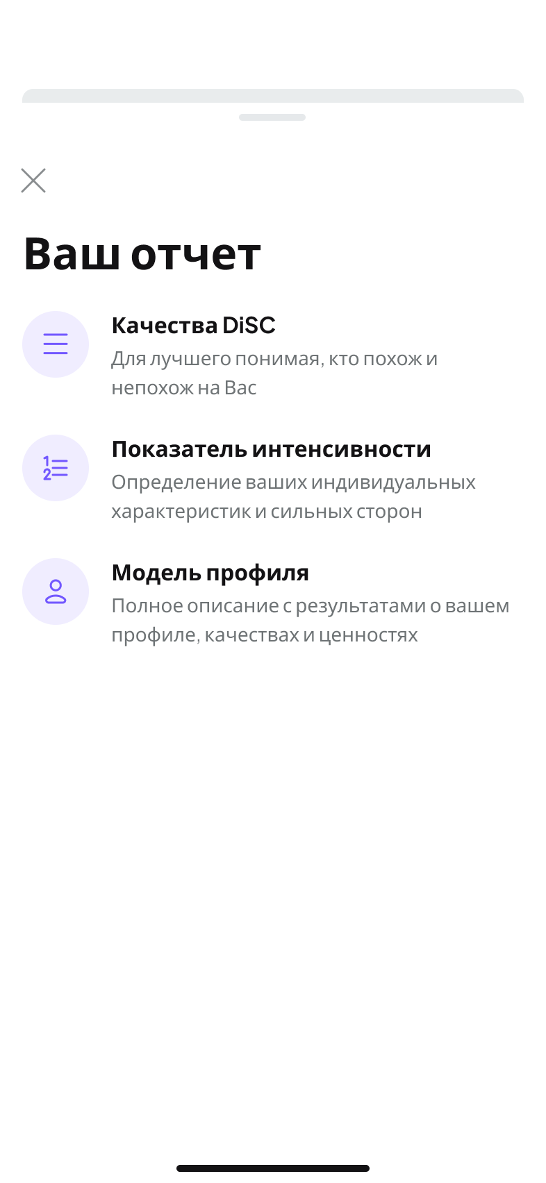 - Индивидуальный профиль с описанием ваших ключевых характеристик